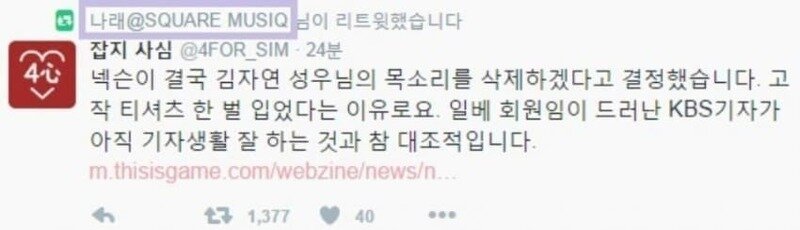 전에 넥슨에서 페미의혹 있던 성우 컷 한적 있는데 이를 뭐라하는 트윗을 이번 보컬이 리트윗으로 지지